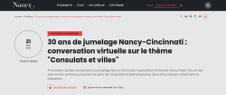 30 ans de jumelage Nancy-Cincinnati : conversation virtuelle sur le thème "Consulats et villes", le 21 mai 2021