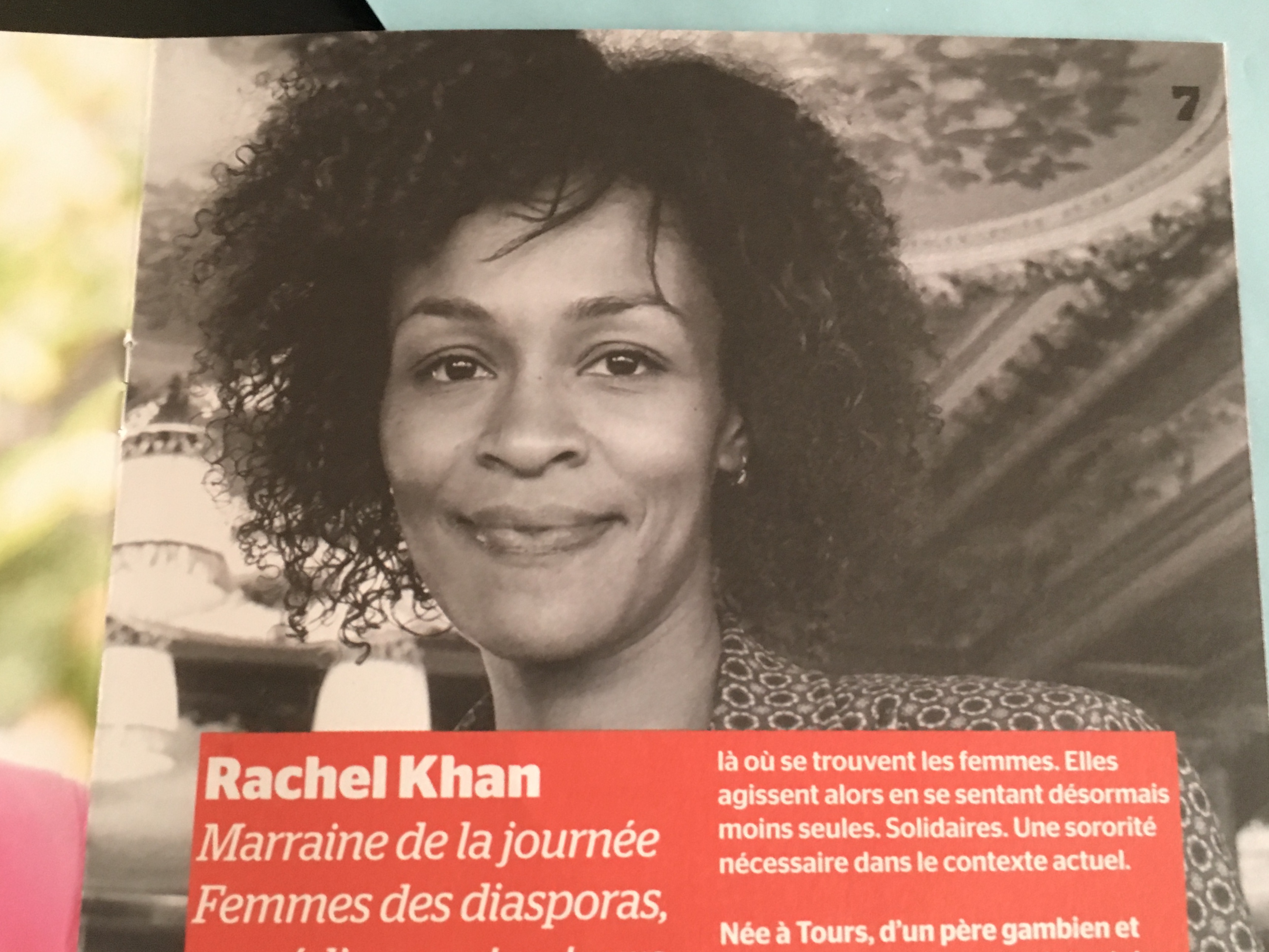 Rachel Khan a également été la marraine de la journée « Femmes des diasporas » à Bordeaux, à l’initiative du Maire-adjoint Pierre De Gaà« tan Njikam. À cette occasion, elle affirmait que « ces femmes mises à l’honneur ont en commun de ne pas avoir honte de l’amour qu’elles donnent en toute situation ; elles font preuve d’une vraie générosité, nous permettent de nous préserver de rugueux systèmes de pensée, et nous donnent à percevoir la beauté menacée du monde ».