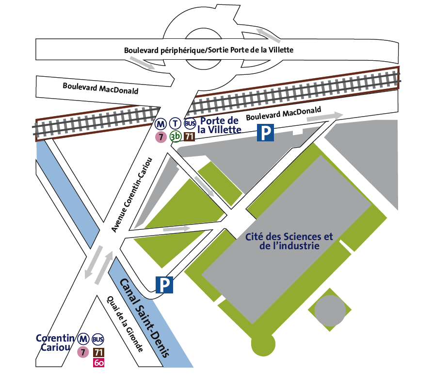 Plan d’accès à la Cité des Sciences et de l’Industrie :