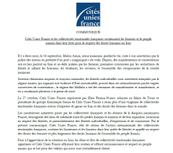 Le 27 octobre dernier, Cités Unies France et la présidente du groupe-thématique Genre, Elise Pereira-Nunes, Adjointe au Maire de Tours, réunissaient plus d'une vingtaine de collectivités territoriales adhérentes pour analyser l'actualité iranienne marquée par une violence d'Etat (…)