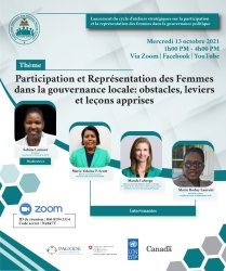 La Fédération Nationale des Femmes Maires d'Haïti (FENAFEMH) prend plaisir à vous inviter au lancement du cycle d'ateliers stratégiques sur la participation et la représentation des femmes dans la gouvernance politique qui se déroulera autour du thème : “Participation et (…)