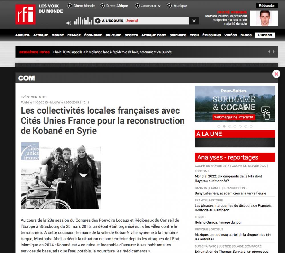 L’appel de Cités Unies France a été relayé par France24.com, RFI.com et MCD (Monte Carlo Doualiya).