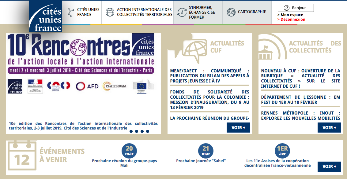 Cités Unies France a récemment ouvert la rubrique « Actualité des collectivités » sur son site Internet, réservée aux collectivités adhérentes de CUF :