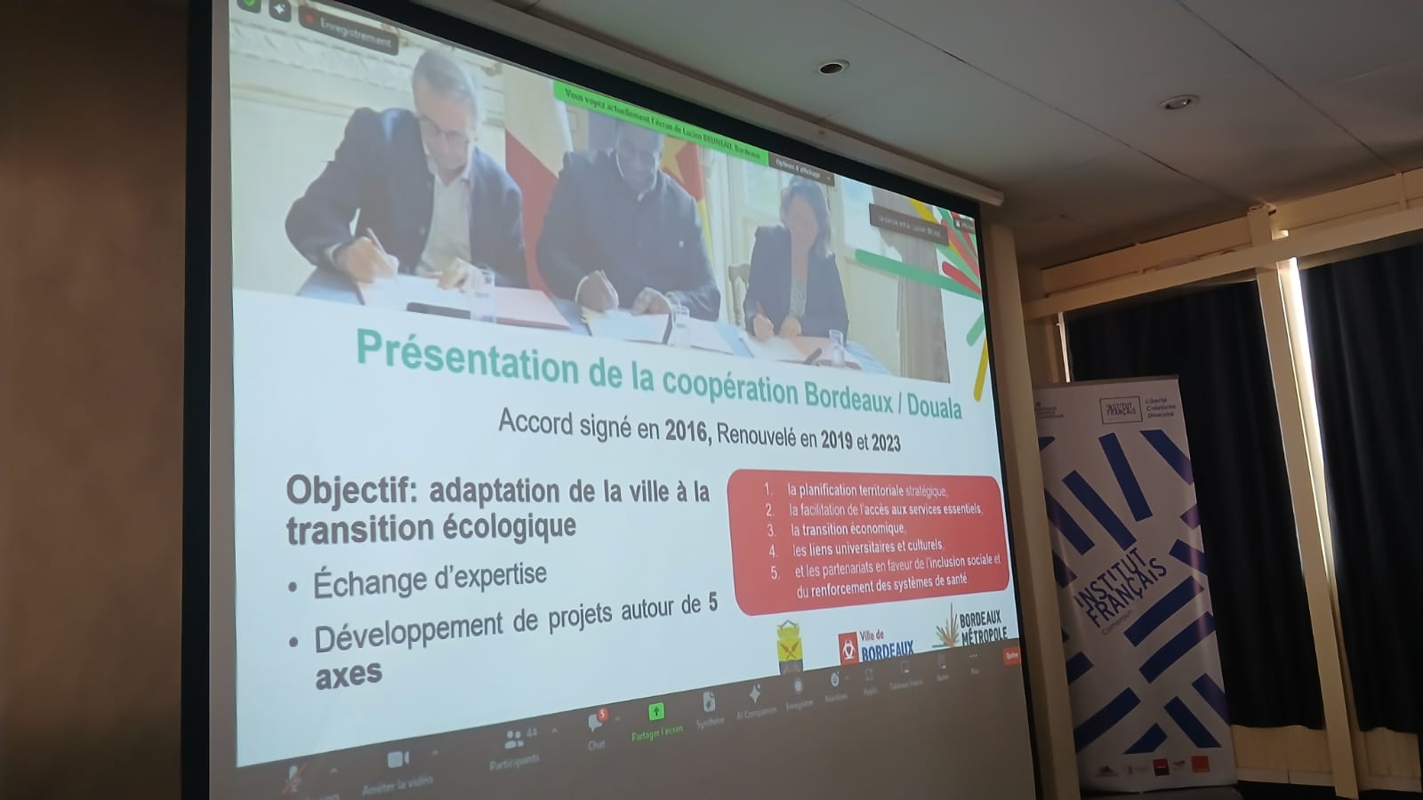 En présence d’une cinquantaine de participants, ce moment a permis de faire un tour d’horizon de la dynamique de coopération entre les collectivités françaises et camerounaises ainsi que du cadre juridique et institutionnel de la décentralisation au Cameroun, mais aussi d’exposer les dispositifs de financement disponibles pour les collectivités.
