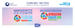 Dans le cadre du Forum Génération Égalité et du mandat ministériel qui lui a été confié, l’Institut Open Diplomacy a organisé une série de 14 conférences consultatives à travers toute la France : le Grand Tour #NotreGénérationÉgalité, débouchant sur des propositions concrètes pour massifier l’effort qu’entreprennent les Françaises et les Français à leur échelle pour faire progresser l’égalité réelle.