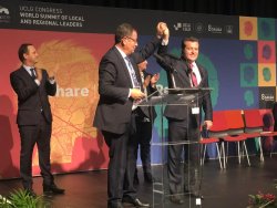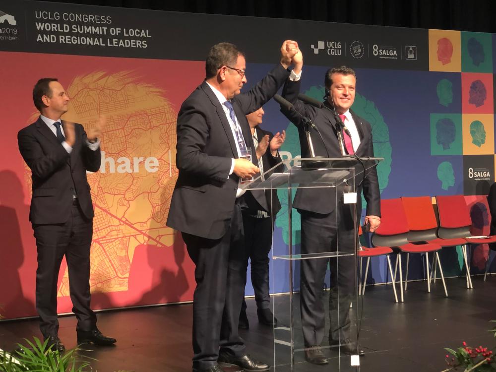 Le Sommet mondial des dirigeants locaux et régionaux du Congrès des cités et gouvernement locaux unis (CGLU) s'est achevé vendredi 15 novembre 2019,au soir, en élisant président Mohamed Boudra, maire d'Al Hoceïma (Maroc) et président de l'Association marocaine du Conseil communal des présidents (AMPCC) ainsi qu'une nouvelle présidence collégiale de coprésidents, de trésoriers et d’envoyés spéciaux.