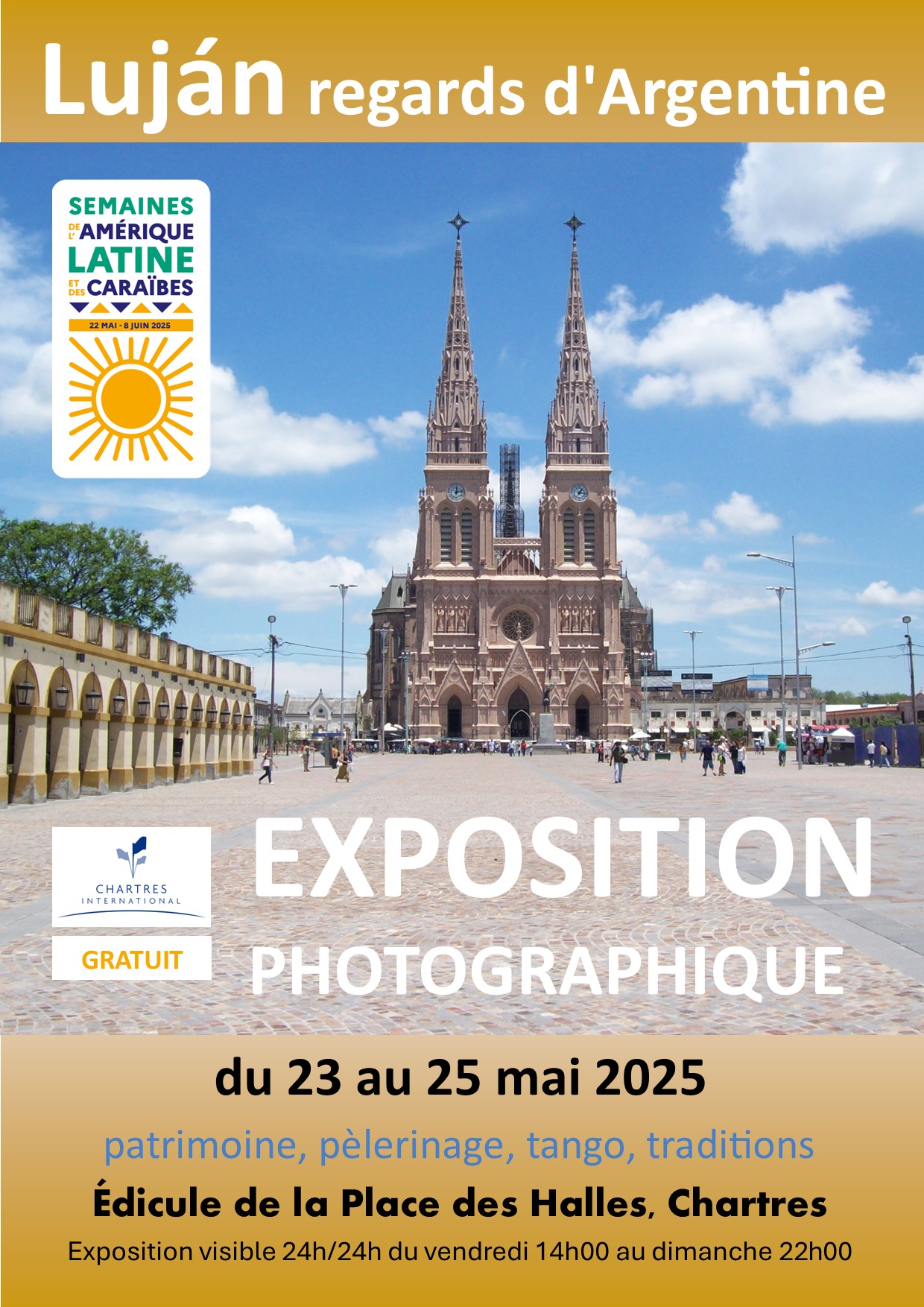 Il s’agit d’une exposition gratuite intitulée « Luján, regards d’Argentine » qui se tiendra du 23 au 25 mai prochains, sur la place de l’Hôtel de Ville de Chartres.