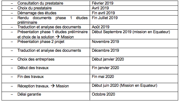 3. Construction d’un réservoir et rénovation de l’usine de traitement de l’eau dans la communauté de Daule. Réalisation des études hydrogéologiques. Bolivar ou construction d’un pont ;