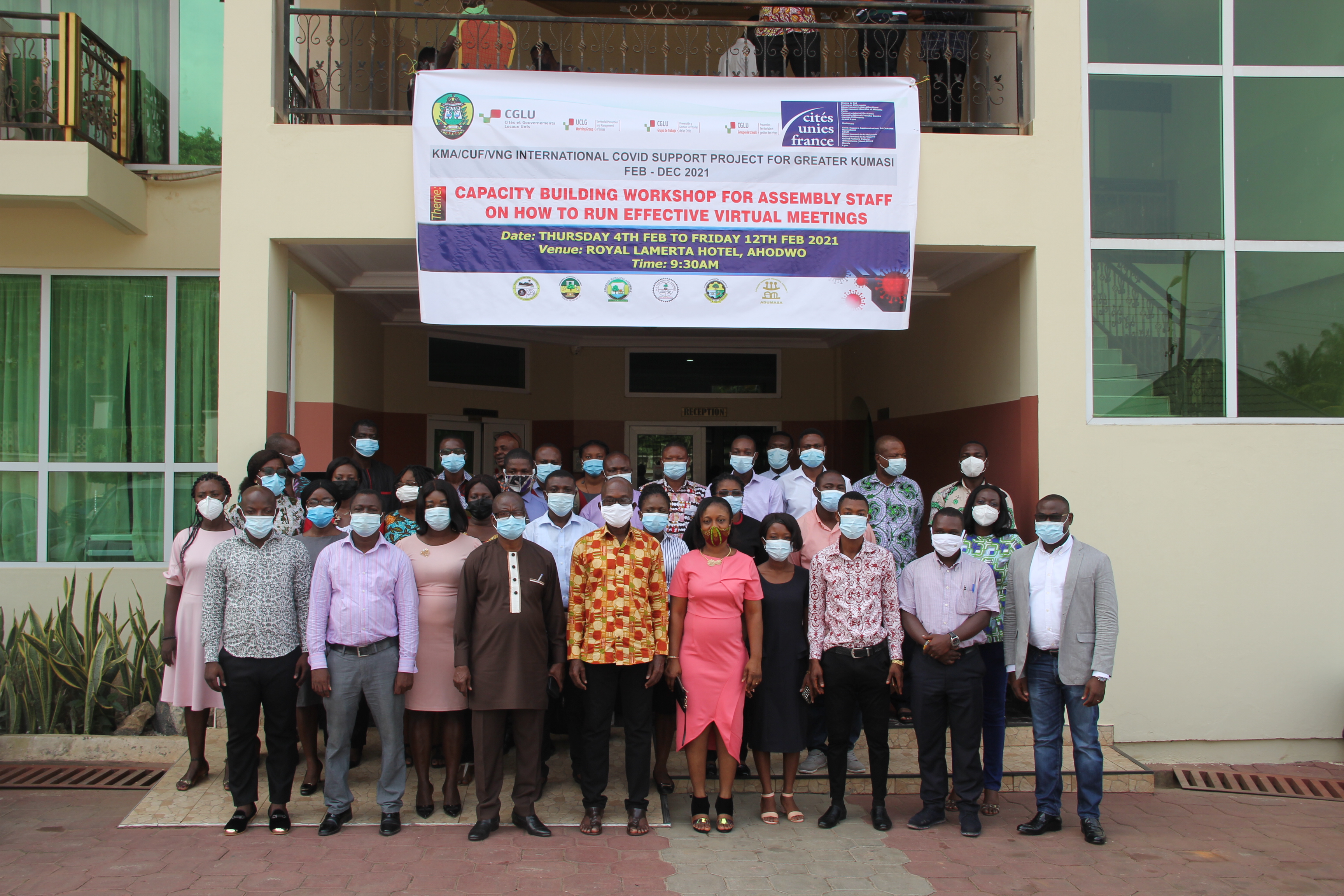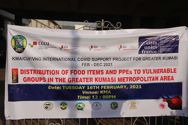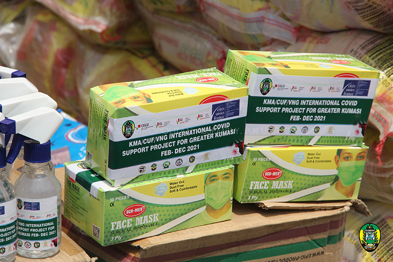 En février 2021, l’Assemblée Métropolitaine de Kumasi et les Assemblées Municipales de Suame, Kwadaso, Old Tafo, Oforikrom, Asokwa et Asokore Mampong ont recueilli les premiers dons du fonds de solidarité. Les municipalités ont reçu de la nourriture (300 sacs de riz, 126 cartons d’huile et de poisson en conserve), ainsi que des masques et du gel hydroalcoolique. Tout ceci sera distribué aux populations les plus pauvres. Des dons ont également été remis aux hôpitaux de la région, il s’agit de filets pour les cheveux, de tabliers et de chaussures.