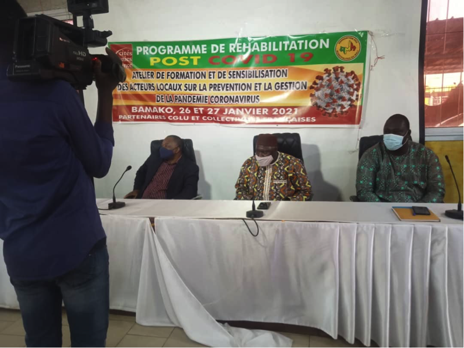Au Mali, le fonds de solidarité de Cités Unies France a permis à l’Association des Municipalités du Mali (AMM) d’organiser en janvier 2021 une formation de sensibilisation aux équipes médicales, aux élus locaux et aux représentants des organisations de la société civile. Les participants ont reçu des kits sanitaires et ont été sensibilisés aux gestes barrières ainsi qu’à la vaccination, les premiers vaccins étant prévus au Mali pour le mois d’avril 2021. Ceci a été organisé dans la continuité du volet « renforcement des capacités ». Les maires et élus locaux des cinq communes bénéficiaires du fonds de solidarité ont participé, à savoir celles de Diré, Sangha, Pelengana, Mandé et Tagandougou et ont été très satisfaits de la formation. Ont été abordés les questions des attitudes et comportements à adopter face à la Covid-19, de comment mieux utiliser les masques, comment mieux se laver les mains et enfin comment se comporter en cas de contamination.