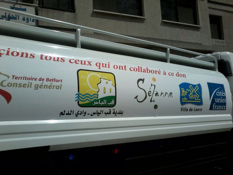 Le conseil général des territoires de Belfort, partenaire de Kab Elias, a réalisé une mission de suivi du projet en novembre 2014 et nous a indiqué que la municipalité de Kab Elias avait acheté le camion-citerne en octobre 2014. Il contient 12 000 litres d’eau. Il transporte l’eau trois jours par semaine dans les 20 campements de Kab Elias : dans chaque campement, le camion rempli entre 13 et 15 containers de 1 000 litres. Ce camion peut également répondre aux sollicitations des habitants de Kab Elias hors des campements (habitants libanais et déplacés syriens hébergés dans les logements de Kab Elias) et à l’arrosage municipal.
