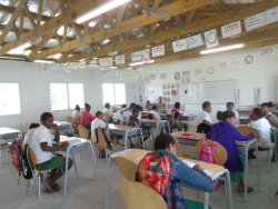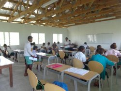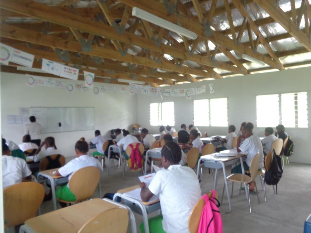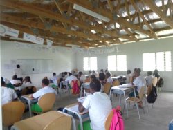 Les classes du lycée reconstruites avec la contribution des collectivités locales françaises. La plaque avec les logos des villes qui ont participé à l’initiative portée par Cités Unies France sera bientôt fixée à l’entrée de l’école.