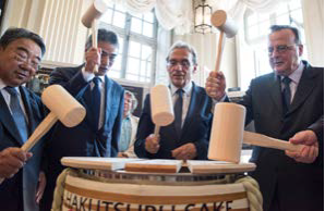 C’est au Palais Rohan que Messieurs Kitera et Shimizu ont célébré, en présence de Messieurs Ries, Maire de Strasbourg, Straumann, Président du Conseil départemental du Haut-Rhin et Raimondi, Président de la Cour européenne des droits de l’homme, le 25e anniversaire de l’ouverture du Consulat Général du Japon à Strasbourg.
