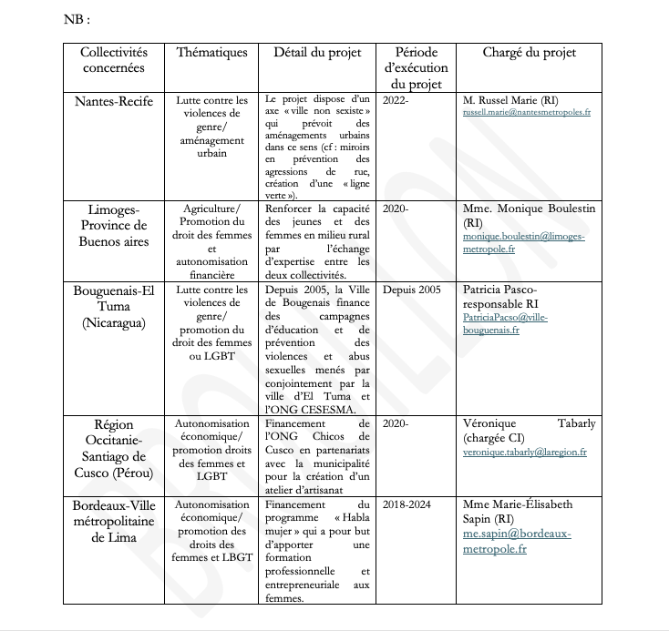 Problématique : Comment intégrer davantage la thématique du genre dans les projets de coopération décentralisée entre la France et l’Amérique latine ?