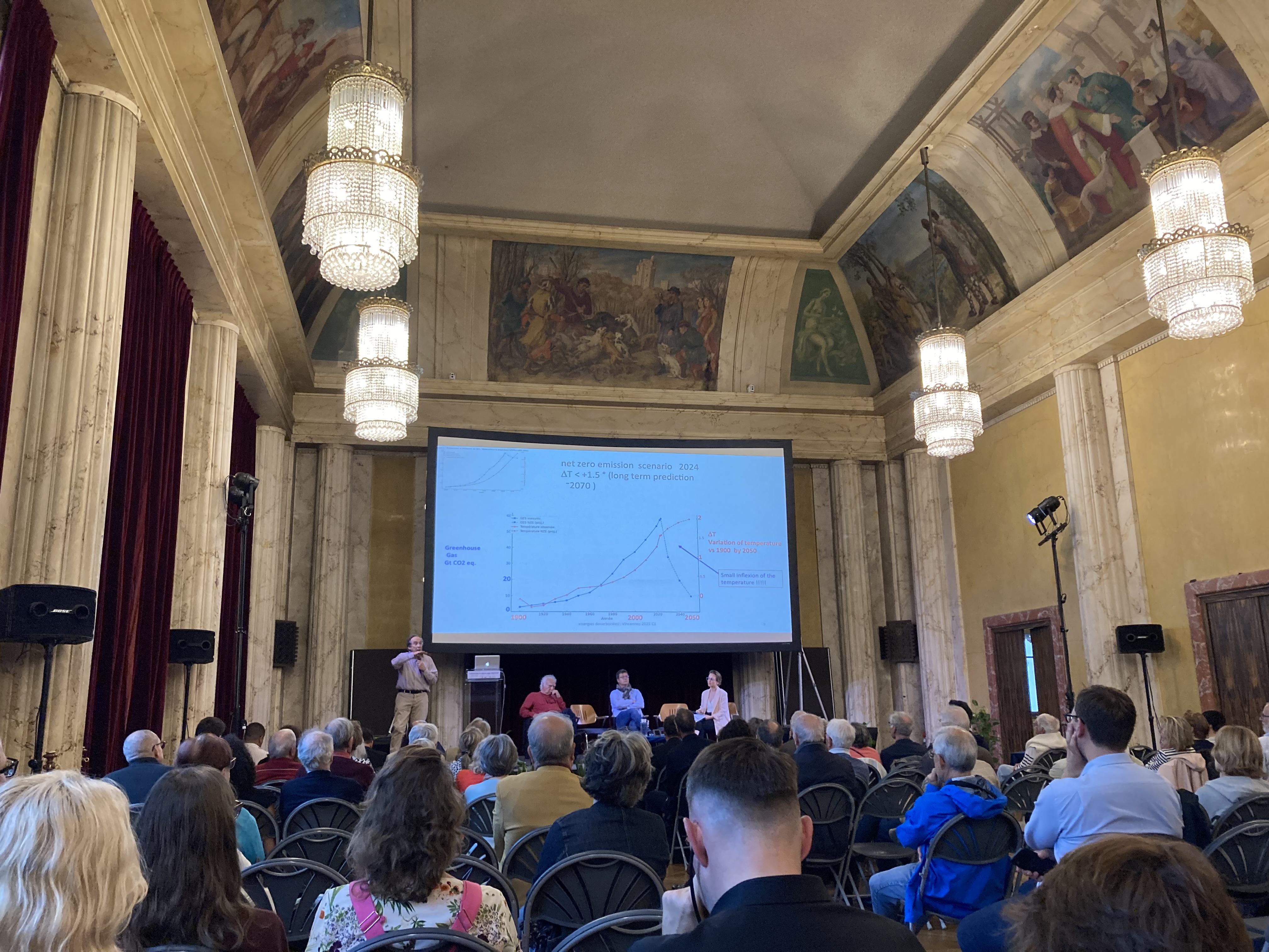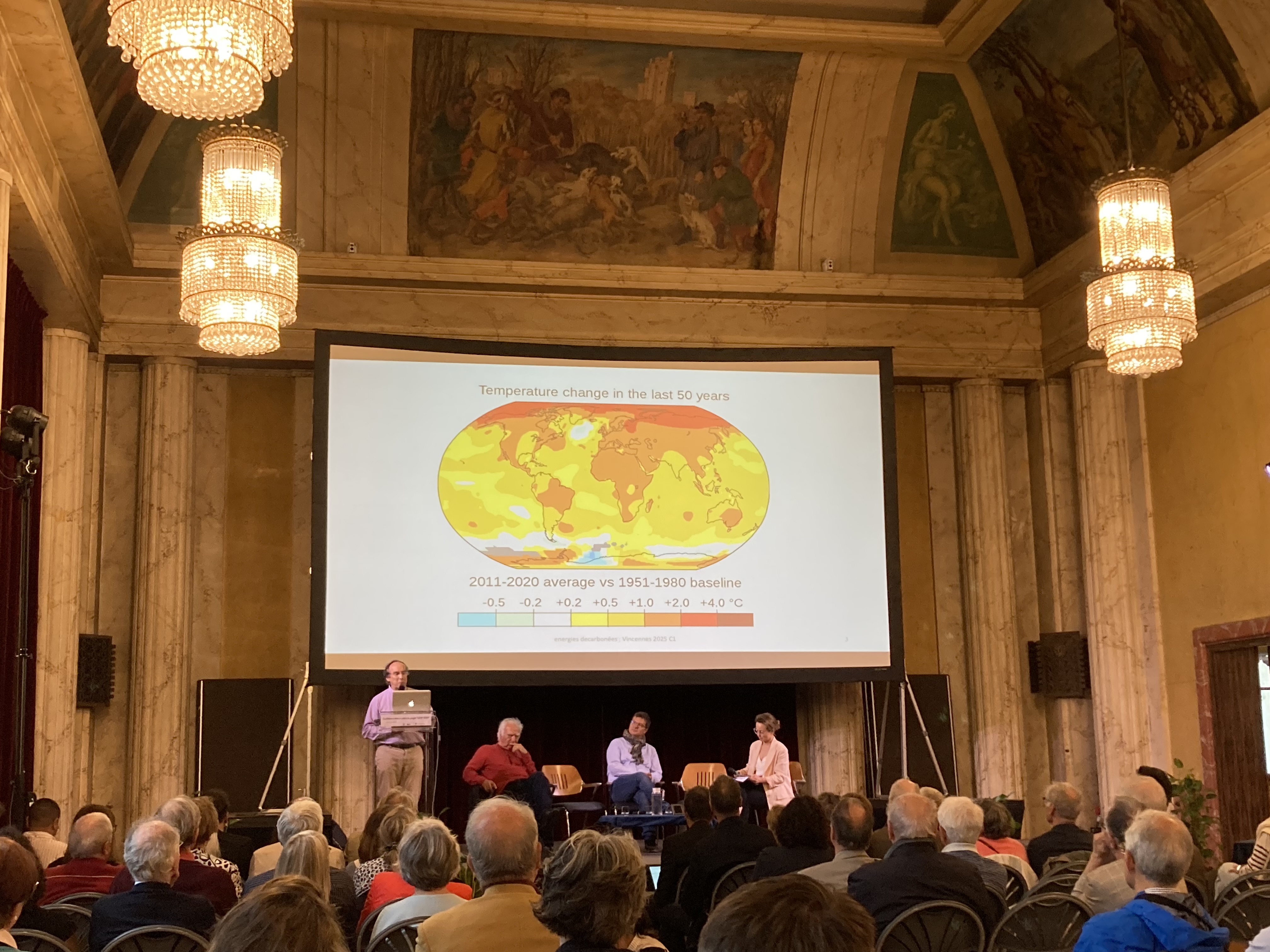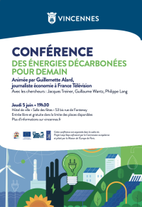Cette conférence a porté sur « Des énergies décarbonées pour demain ». Elle a été animée par Guillemette Halard, journaliste économie à France Télévision. Philippe Lang, Directeur de recherche au CNRS, spécialiste des nouveaux matériaux pour le photovoltaïque a évoqué les différents scénarios pour atteindre un réchauffement climatique limité. Puis, Jacques Treiner, physicien théoricien, chercheur-associé au Laboratoire interdisciplinaire des énergies de demain, a expliqué la double contrainte carbone. Quant à Guillaume Wantz, ingénieur, cofondateur de plusieurs start-ups dédiées à la valorisation du photovoltaïque organique, il a imaginé les systèmes photovoltaïques de demain. Enfin, pour conclure, Philippe Lang a questionné les pérovskites hybrides comme possibles matériaux du futur pour le photovoltaïque.