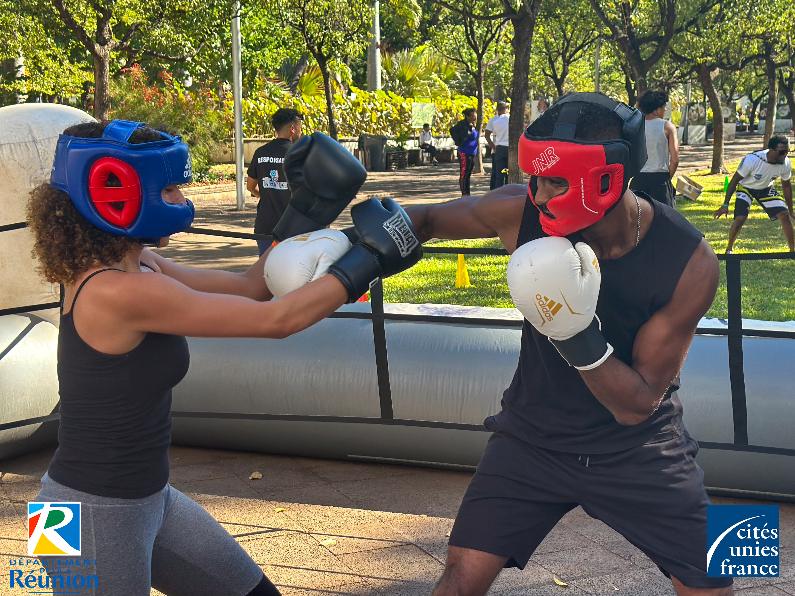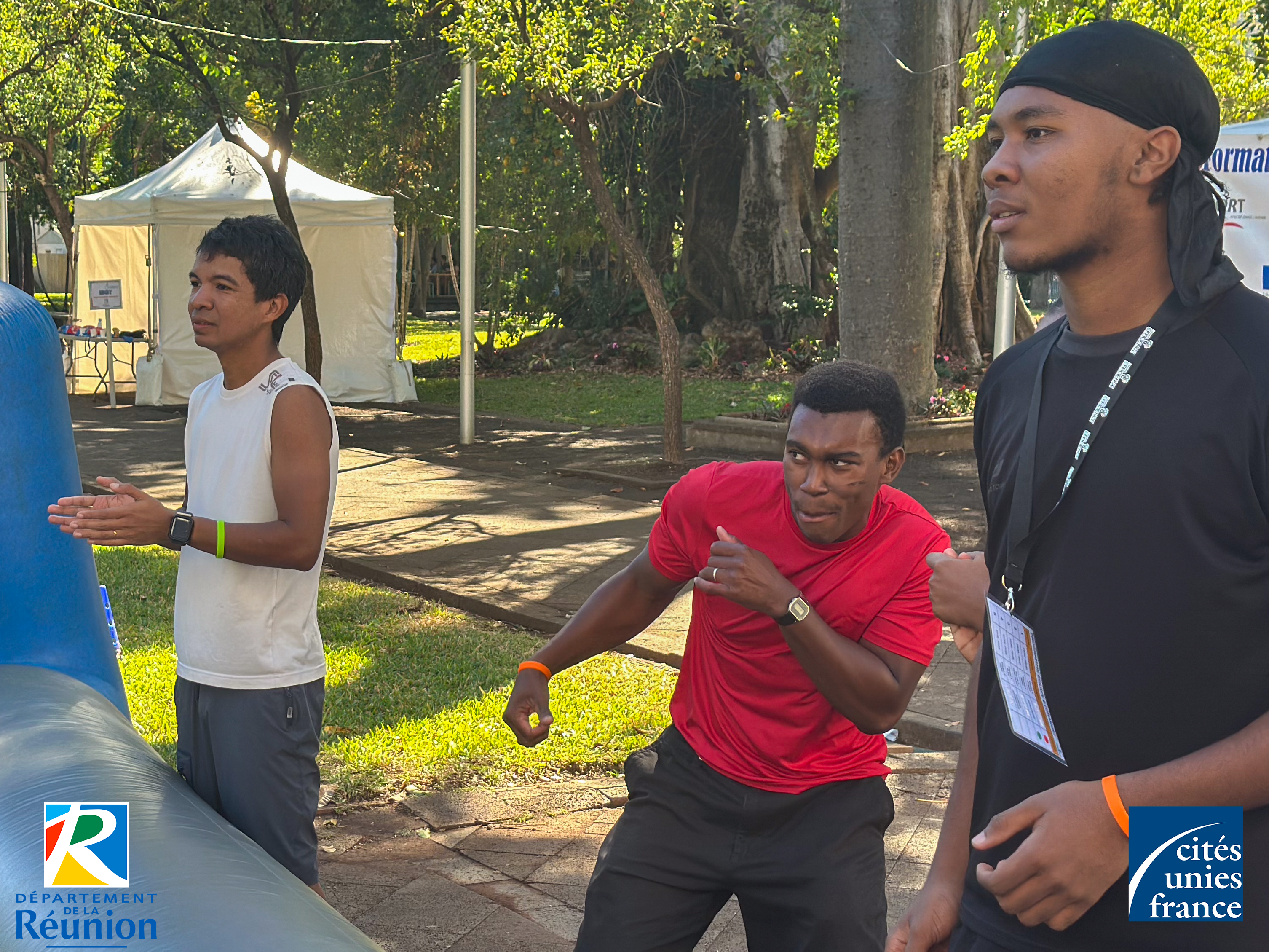 Des partenaires comme France Volontaires, la Ligue Réunionnaise d’Athlétisme, la Chambre des Métiers, Efficience, Gym Plus (pour l’échauffement des pratiquants), ASPBA pour la Boxe Educative, 974 Action pour le Beach Rugby, ont animé les stands, démontrant l’importance de l’interaction entre acteurs publics et société civile.