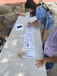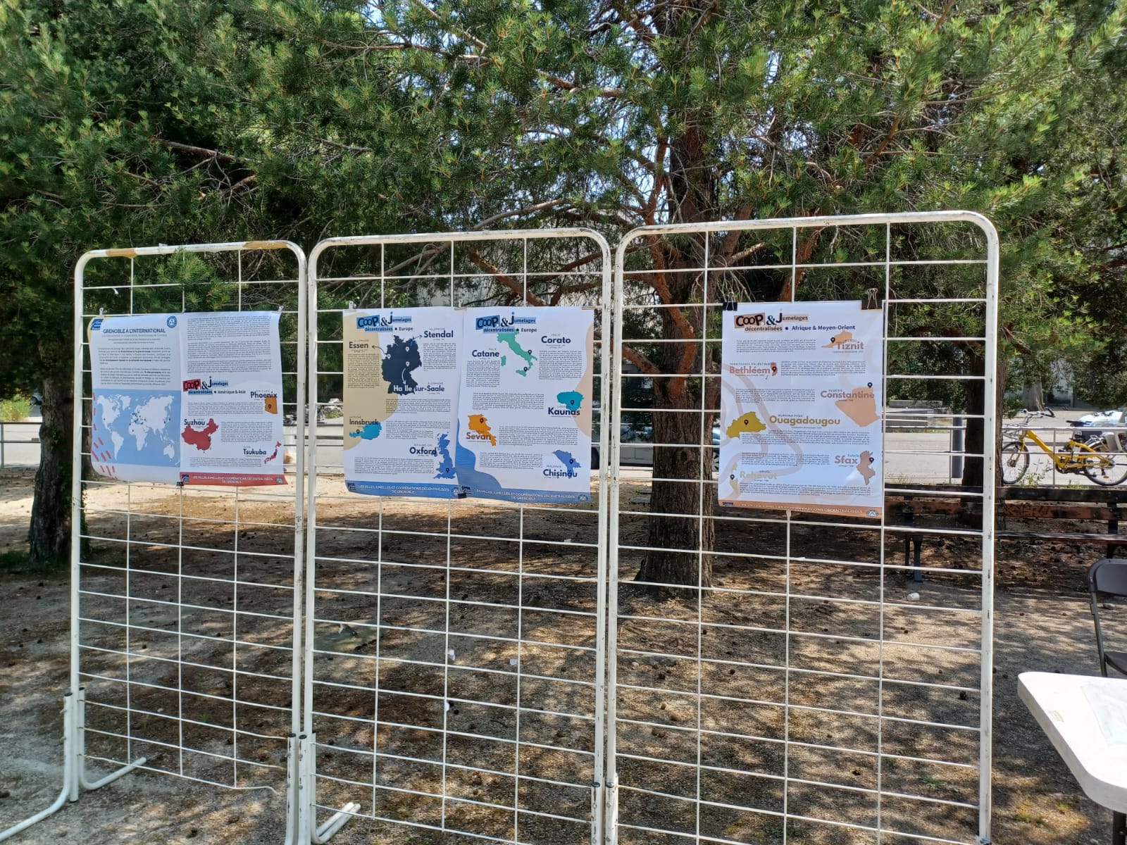 Une exposition de panneaux décrivait des coopérations de Grenoble, en expliquant l’histoire des jumelages et de la coopération décentralisée. On y apprend que Grenoble a 19 villes partenaires et que ces coopérations mettent en particulier l’accent sur les transitions écologique, sociale et politique mais aussi les droits humains.
