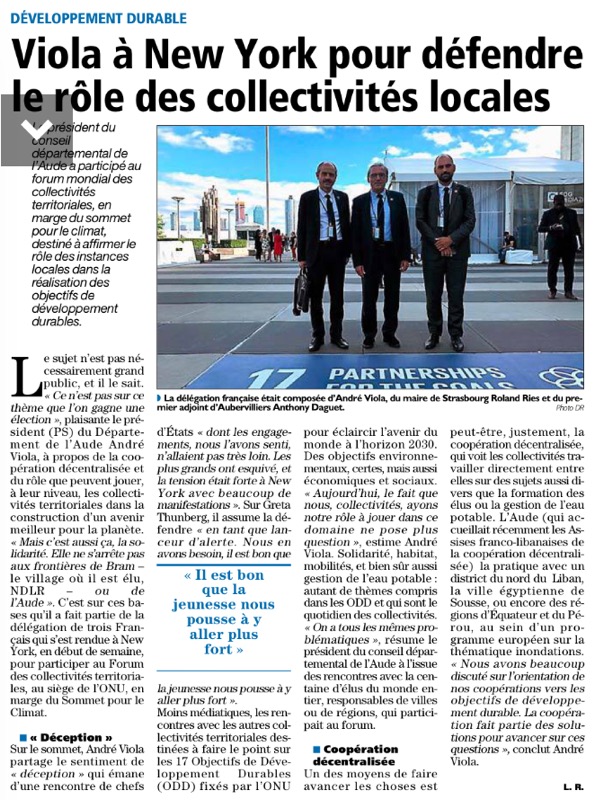 Département de l’Aude : « Les objectifs de développement durable (ODD) abordent des problèmes mondiaux. Ils ne doivent pas se limiter aux problèmes de l’environnement et des changements globaux. C’est un programme complet visant à « ne laisser personne derrière ».