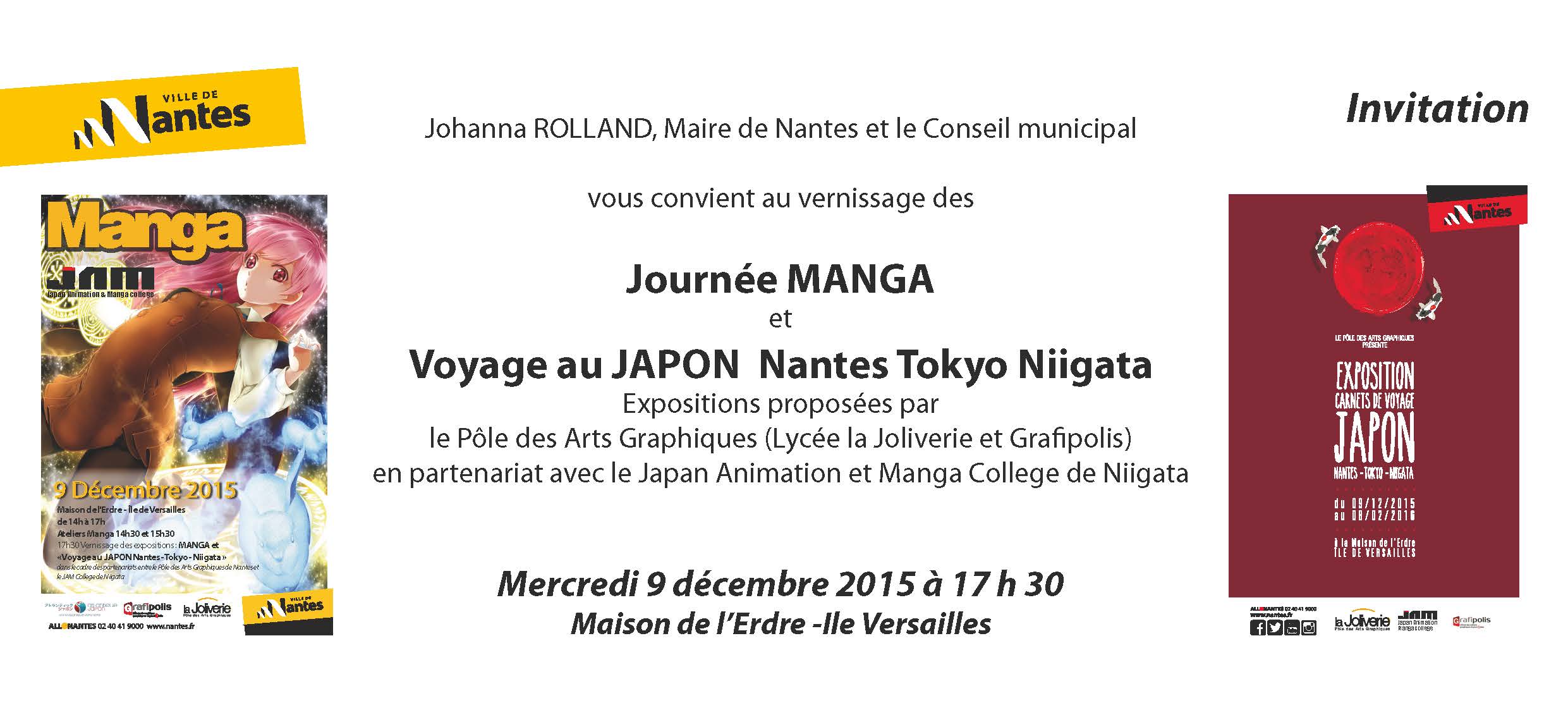 Une exposition : « Voyage au JAPON Nantes Tokyo Niigata » est également proposée par le Pôle des Arts Graphiques (Lycée la Joliverie et Grafipolis) en partenariat avec le JAM College de Niigata, en décembre 2015 et janvier 2016, à la Maison de l’Erdre sur l’ile de Versailles.