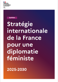 Pour plus d’informations : https://www.diplomatie.gouv.fr/fr/politique-etrangere-de-la-france/diplomatie-feministe/strategie-internationale-de-la-france-pour-une-diplomatie-feministe-2025-2030/