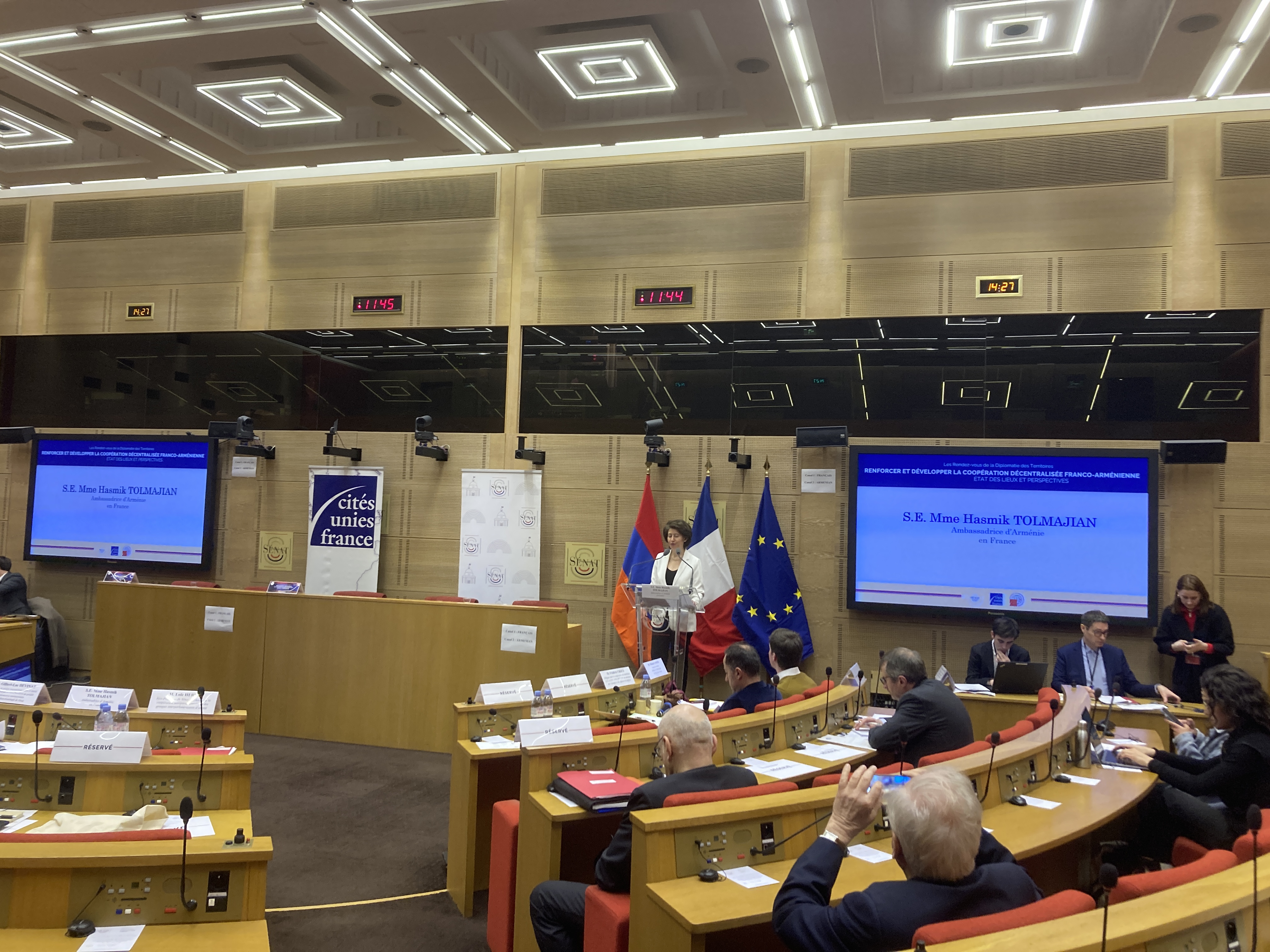 Cités Unies France a également eu l’honneur d’accueillir S.E. Madame Tolmajian, Ambassadeur d’Arménie en France et S.E. Monsieur Decottignies (en visio), Ambassadeur de France en Arménie.