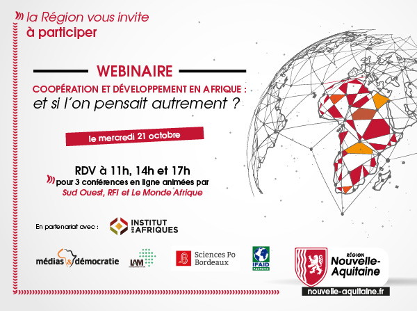 Le webinaire - organisé par la Région Nouvelle-Aquitaine et Médias & Démocratie en partenariat avec l’Institut des Afriques, Ifaid Aquitaine, LAM - Les Afriques dans le Monde, - propose 3 conférences autour de ces thèmes :