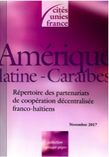 Ce répertoire, édité pour la première fois en octobre 2013 et mis à jour en novembre 2017, offre une vision globale de la trentaine de partenariats de coopération décentralisée existant entre la France et Haïti. Sur une centaine de pages, il recense leurs actions dans les domaines de développement les plus divers : la formation de cadres territoriaux, la gestion des déchets locaux, le développement rural, l’environnement et la prévention contre les catastrophes naturelles. Ce répertoire s’adresse aux collectivités territoriales, ainsi qu’à l’ensemble des acteurs intéressés, en France et en Haïti.