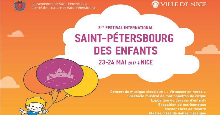 Dans le cadre du 20ème anniversaire de son jumelage avec Saint-Pétersbourg, la Ville de Nice accueille la 8ème édition du festival international « Saint-Pétersbourg des enfants », mardi 23 et mercredi 24 mai 2017. Ce dernier est organisé par le Comité de la Culture de Saint-Pétersbourg.