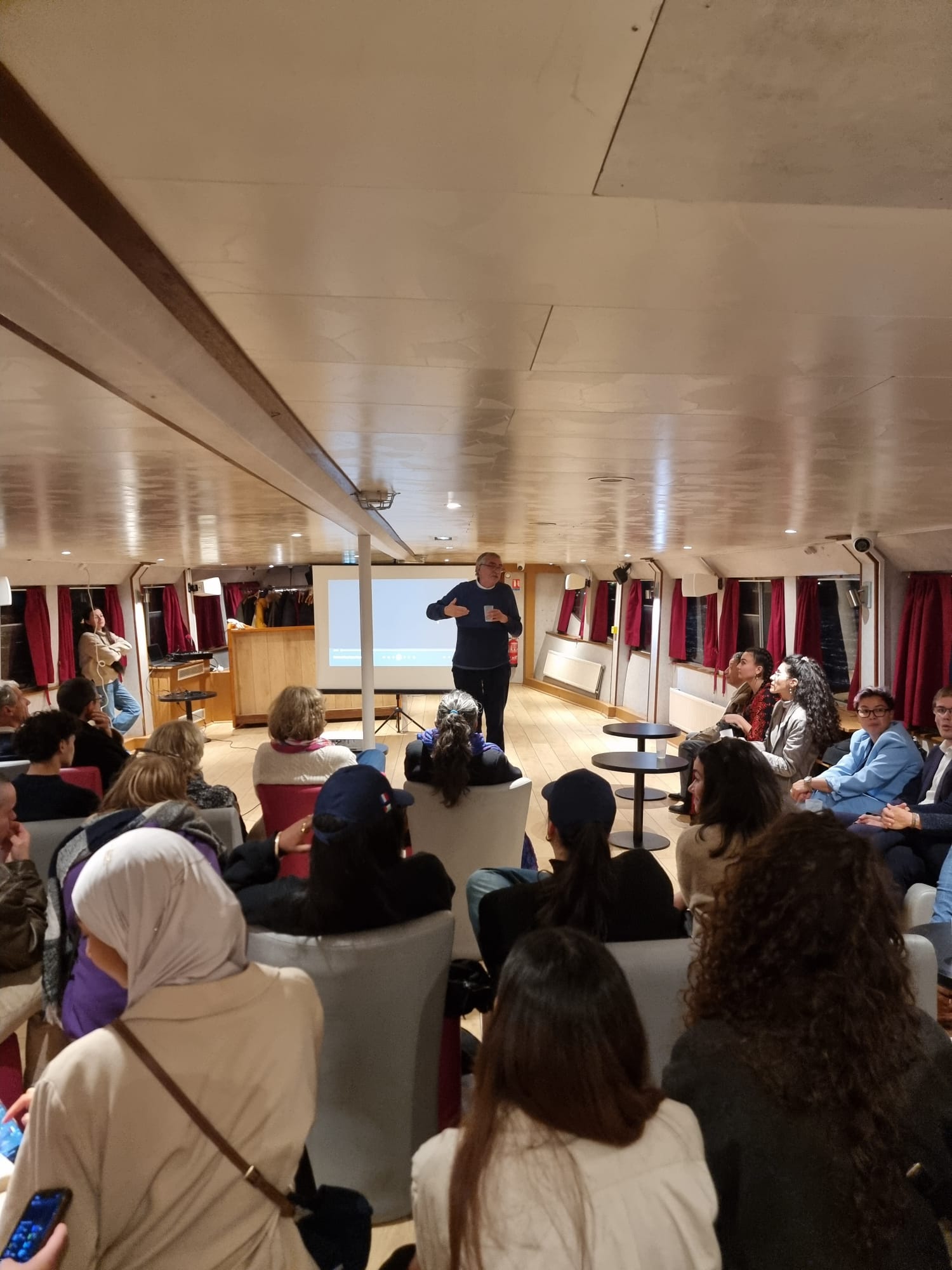 Le vendredi 25 octobre dernier s’est tenue la Journée de la jeunesse franco-palestinienne, qui s’est clôturée symboliquement par une croisière pour la paix sur la Seine. Cet événement devait initialement être marqué par la présence de jeunes ambassadeurs palestiniens ainsi que des membres du centre social d’Al-Bustan, situé dans le quartier de Silwan à Jérusalem-Est. Cependant, en raison de la situation actuelle, ils n’ont pas pu se rendre en France.