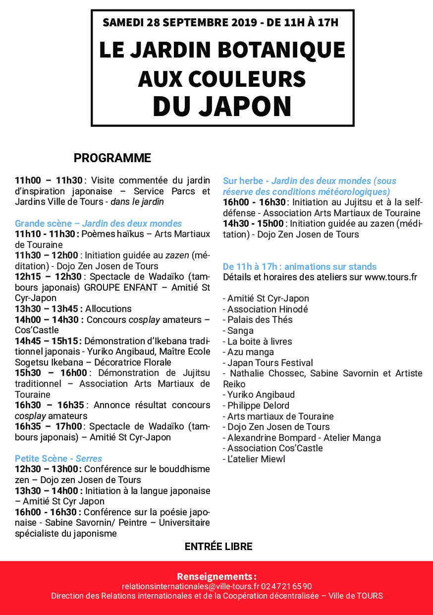 Cet évènement interculturel au Jardin Botanique pérennise la coopération entre les jardins historiques de Tours, le parc Tamamo de sa ville jumelle de Takamatsu et les jardins de Villandry.