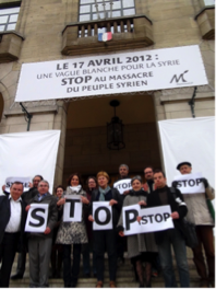 Grçce au soutien de Amnesty International France, de la FIDH (Fédération internationale des ligues des drotis de l’homme), la LDH ( Ligue des droits de l’homme), de Human Rights Watch, de l’OMTC (Organisation mondiale contre la torture ), de Reporters sans frontières, Réseau EuroMéditerranéen des droits de l’homme, de l’ACAT, de Souria Houria, de nombreuses ONG syriennes, de l’Ordre des avocats de Paris, et le Conseil des Communes et Régions d’Europe (CCRE), Cités Unies France (CUF), ainsi que le l’agence TBWA Paris, nous lançons « Une vague blanche pour la Syrie », manifestation internationale pour demander l’arrêt des massacres en Syrie.