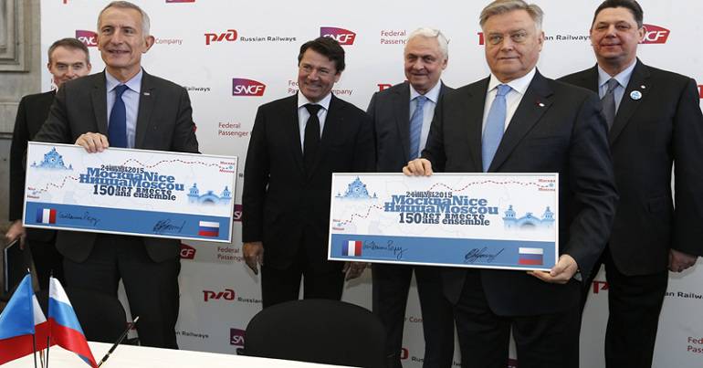 Présentation des nouvelles voitures du train Riviera Express, reliant Moscou à Nice et qui fête ses 5 ans d’existence.