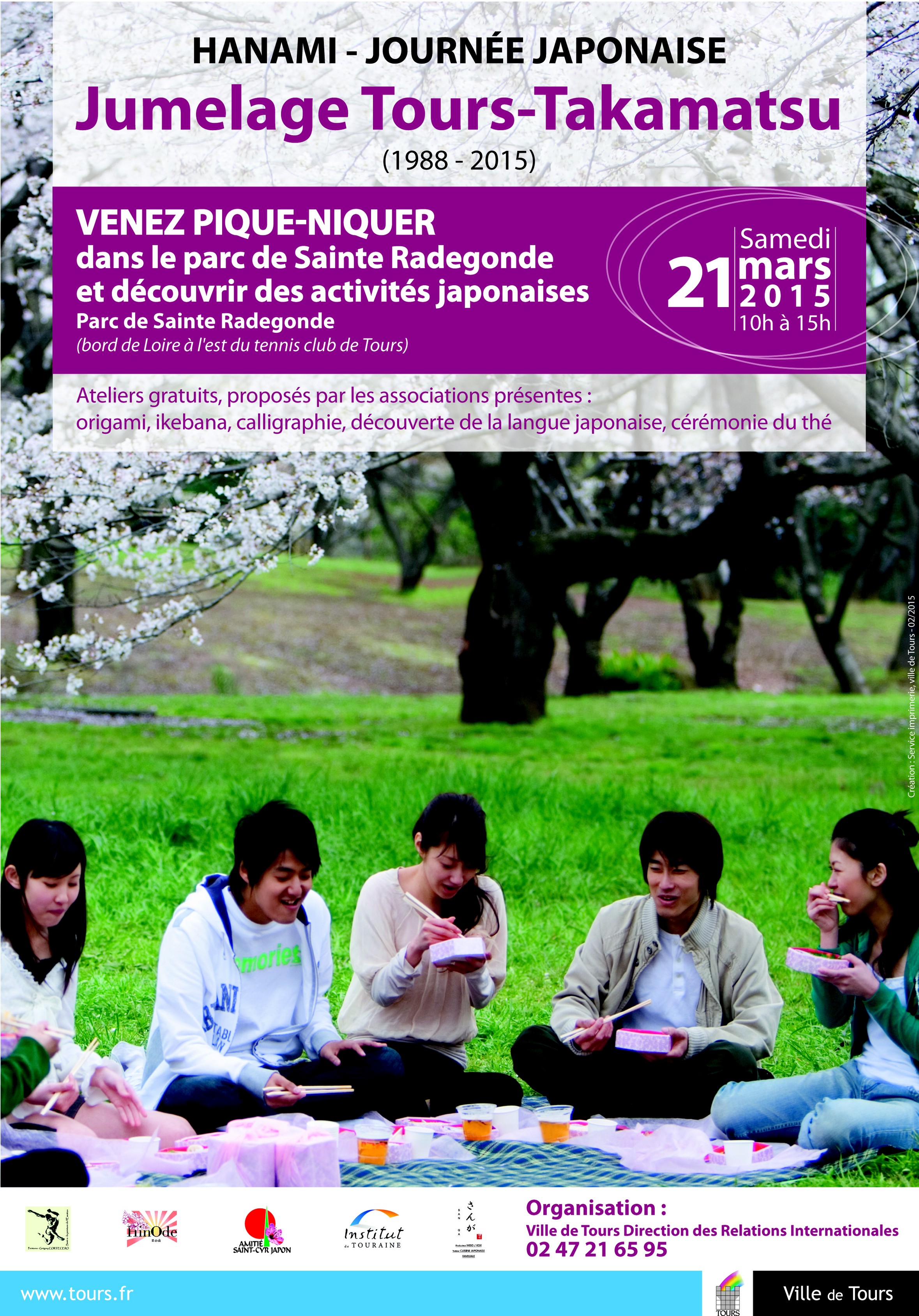 La municipalité et l’équipe des relations internationales de la Ville de Tours ont organisé UN GRAND PIQUE-NIQUE TRADITIONNEL JAPONAIS « HANAMI » sous les cerisiers en fleurs du parc Sainte Radegonde, le samedi 21 mars 2015.