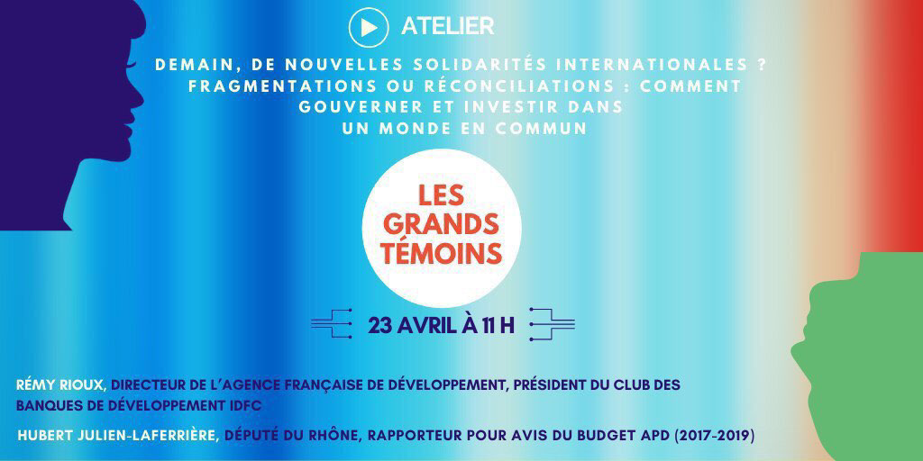Aussi, j’ai le plaisir de vous convier à l’atelier de réflexion en visioconférence que j’animerai aux côtés de Rémy RIOUX, Directeur Général de l’Agence française de développement, sur le thème : « Demain, de nouvelles solidarités internationales ? Fragmentations ou Réconciliations : comment gouverner et investir dans un monde en commun ? » - Jeudi 23 avril à 11h00
