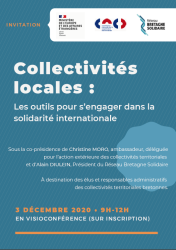 Réseau Bretagne Solidaire recevra la Délégation pour l’Action Extérieure des Collectivités Territoriales (DAECT) le 3 décembre 2020 de 9h00 à 12h00, en visioconférence. Sous la co-présidence de Christine Moro, ambassadeur, déléguée pour l’action extérieure des collectivités territoriales, ce (…)
